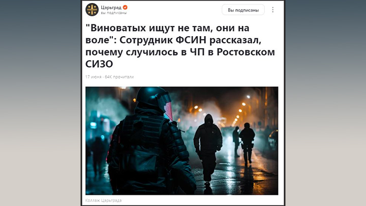 Сотрудник СИЗО рассказал, что на самом деле происходит за проволокой. Террористы и зэки, попавшиеся на наркоте, не просто захватывают заложников, как это было в Ростове-на-Дону, но и хладнокровно убивают сотрудников ФСИН, как это произошло в Волгограде. Люди в форме не хотят рисковать жизнью за 40 тысяч рублей. Как тюрьмы становятся для нас фронтом в тылу, разбирался Царьград.