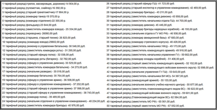 Базовые ставки окладов по воинской должности. Скриншот с сайта voensud-mo.ru