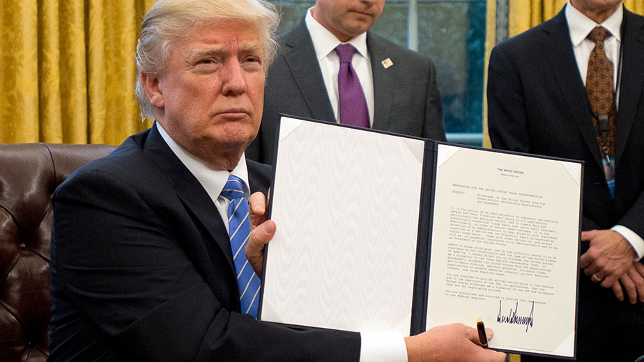 В свой первый рабочий день решительно настроенный 45-й президент США в Овальном кабинете Белого дома на знаменитом столе Резолют в окружении своих ближайших помощников подписал ряд исполнительных указов, в том числе о выходе Соединенных Штатов из числа стран, договорившихся о создании Транстихоокеанского партнерства (ТТП), которое делало транснациональные компании равными с национальными правительствами игроками и стало бы началом нового этапа деиндустриализации США.