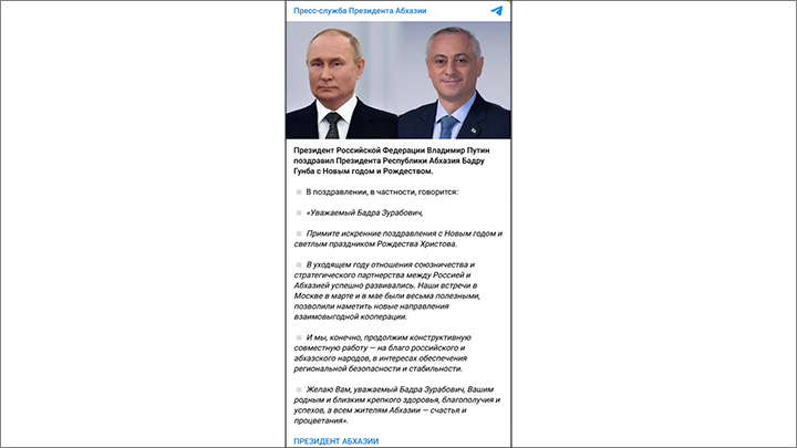 Скриншот: ТГ-канал пресс-службы президента Абхазии https://t.me/presspresidentofabkhazia/4984