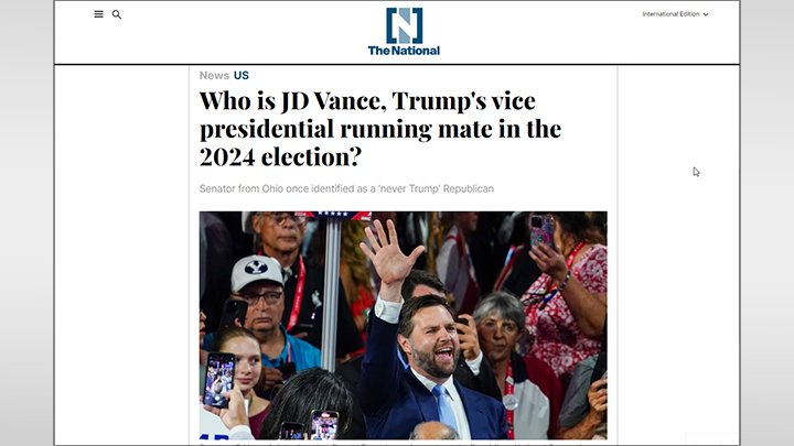 "Кто такой Джей Ди Вэнс?" Сенатора от Огайо однажды назвали республиканцем, который "никогда не будет Трампом". Теперь он будет вместе с ним. Скриншот страницы сайта The National