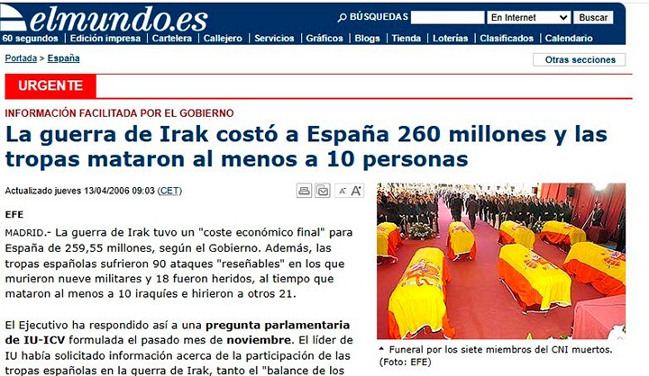 Более 1,3 тысячи "мучачо" в составе испано-латиноамериканской бригады "Плюс-Ультра" под командованием генерала Альфредо Кардона воевали в центральной части Ирака. Были погибшие, раненые и сотни миллионов евро, потраченных Мадридом на операцию.