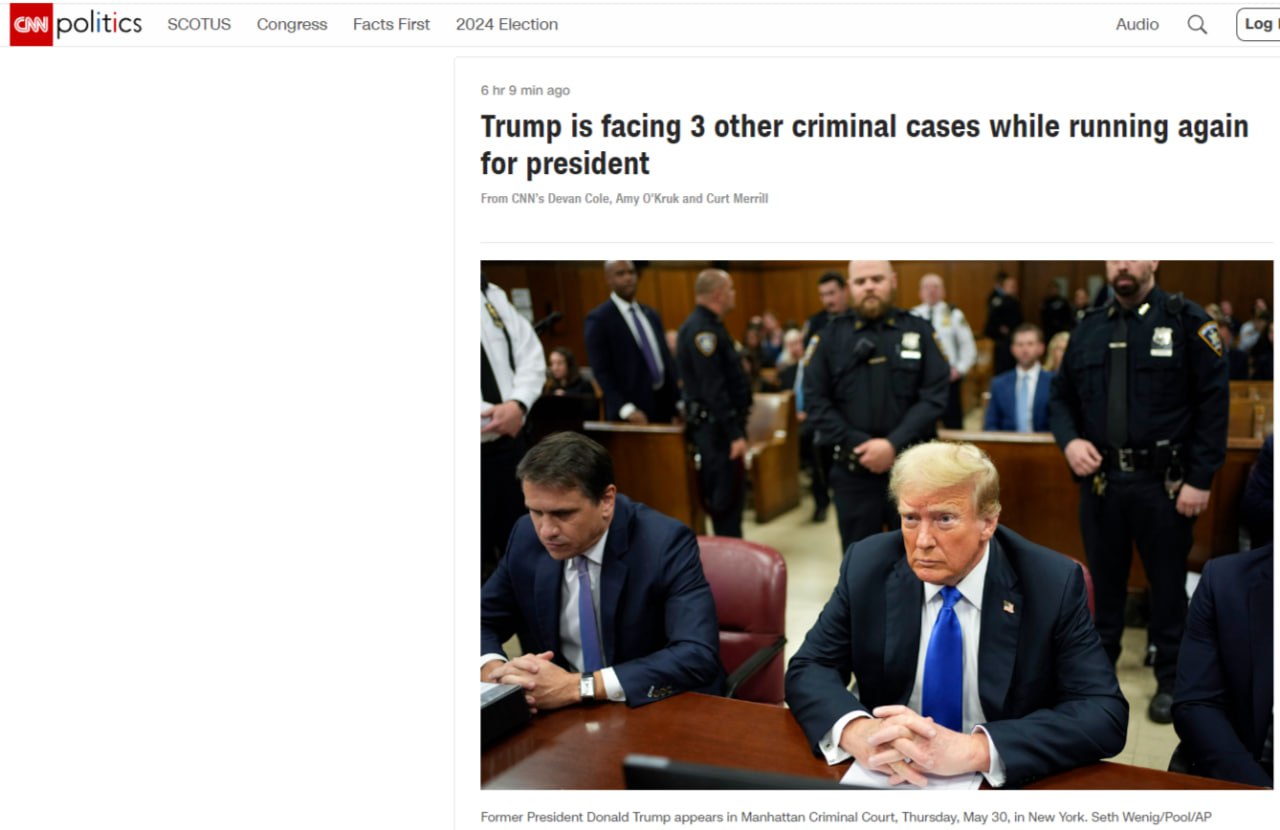 Скрин CNN. Трамп во время судебного заседания. Есть, о чем задуматься.