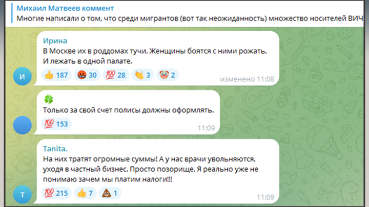 Лечение и учёбу мигрантов оплачивают граждане России. Скрин с ТГ-канала "Михаил Матвеев коммент"