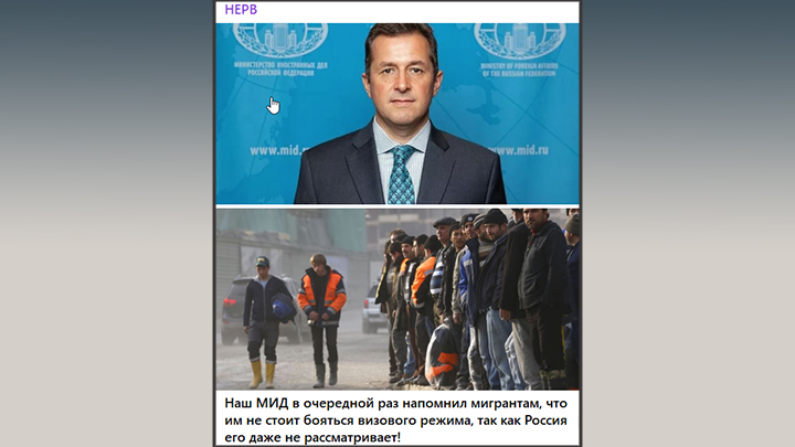 Тем временем МИД России успокоил мигрантов. Скрин с ТГ-канала "НЕРВ"