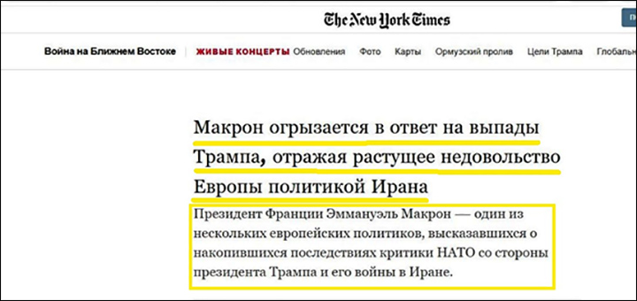 Почитаешь прессу – так Европа во главе с Макроном уже Трампа под себя подмяла… Скриншот: интернет-сайт nytimes.com (автоперевод)