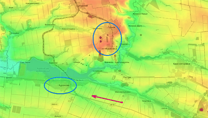 При этом надо отметить, что взять Курахово будет очень сложно, но не потому, что город сам по себе представляет трудную цель, а из-за расположенного севернее посёлка Кураховка, который лежит на бугре, с востока прикрыт рекой, а с юга — Кураховским водохранилищем. Настоящая крепость.