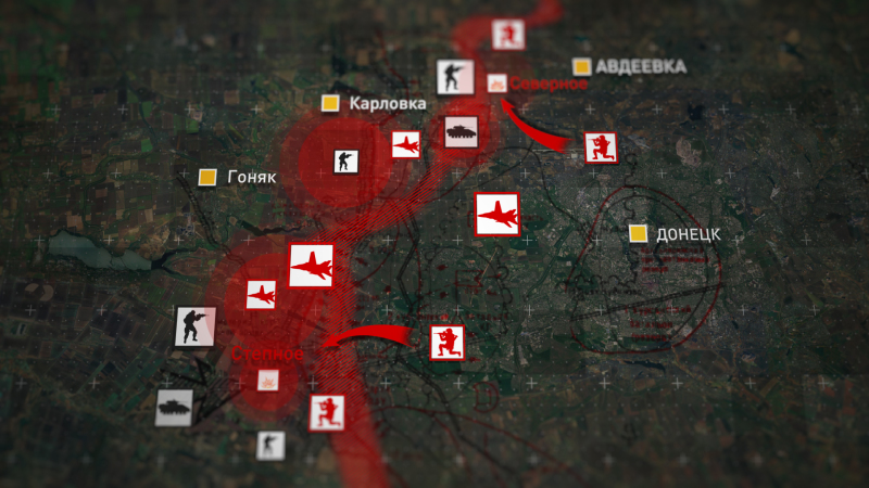 На Авдеевском направлении на северном фланге русские атакуют Бердычи и Семёновку. Там пока ещё сохраняется присутствие отступивших вражеских частей.