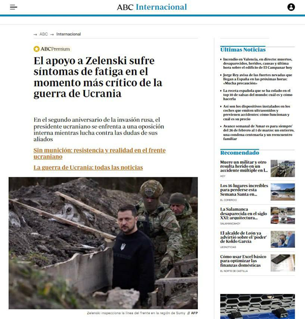 Усталость украинцев от войны сказывается и на поддержке Владимира Зеленского в самый критический момент. Спустя два года после начала СВО главе Украины приходится противостоять внутренней оппозиции и одновременно бороться с сомнениями союзников. Об этом пишет испанская ABC: