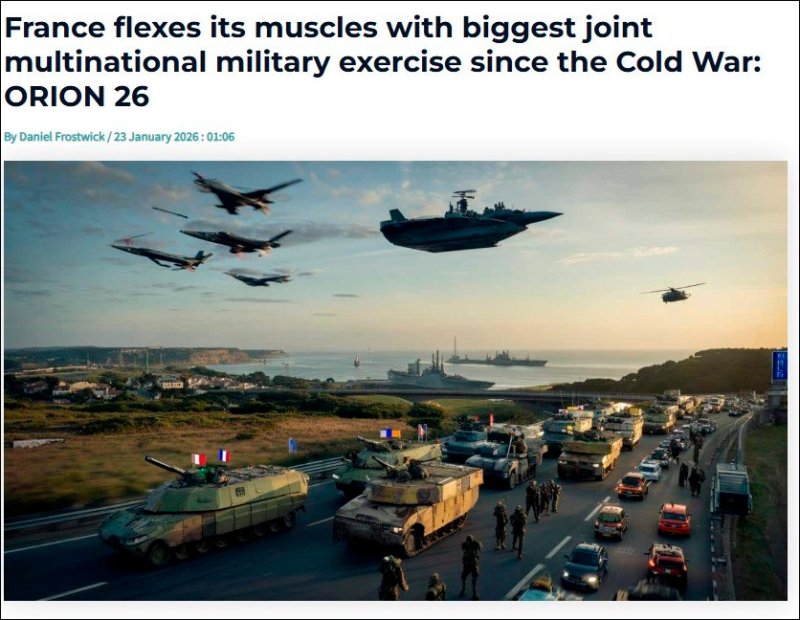 Франция демонстрирует свою мощь, проводя крупнейшие со времён холодной войны совместные многонациональные военные учения ORION 26 (автоперевод). Скриншот: сайт Blackburndrone