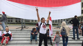 – Это тоже наш флаг! – улыбнулась мне Диана – девушка несла в руке зелёно-красный государственный стяг страны. И заметно выделялась в толпе митингующих с бело-красно-белыми флагами. – Мы не должны разделяться. Если народ рассорят – сами понимаете, что будет…