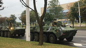 Военные оцепили монумент и огородили его по периметру колючей проволокой. Но митингующие всё равно дошли до стелы, чтобы опять громко прокричать, какой Лукашенко плохой человек.