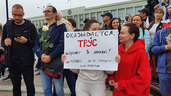 Митингующие такого не ожидали. Люди старшего поколения заулыбались, узнав любимые мелодии. Молодёжь почтительно притихла. Но уже через несколько минут протестующие собрались с духом и опять завели свои речовки.