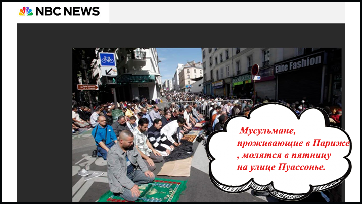 NBC NEWS. Мусульмане, проживающие в Париже, молятся в пятницу на улице Пуассонье