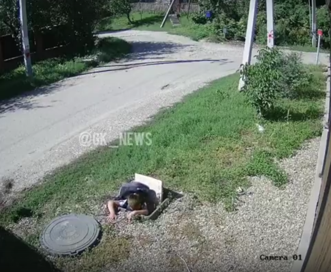 Сам момент несчастного случая попал в объектив камер видеонаблюдения неподалеку от остановки общественного транспорта. На кадрах видно, как мальчик идет по тротуару. В какой-то момент он заинтересовался люком. Остановившись перед ним, ребенок наступил на фанеру, которая была вместо крышки, и провалился. К счастью, мальчик успел схватиться руками за край и выбраться.