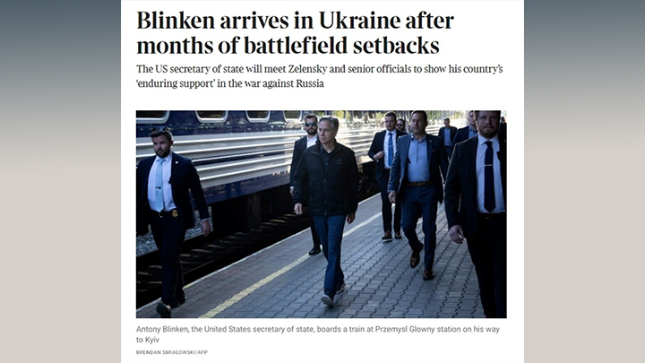 Блинкен приехал в Киев успокаивать Зеленского. Скрин с сайта Times