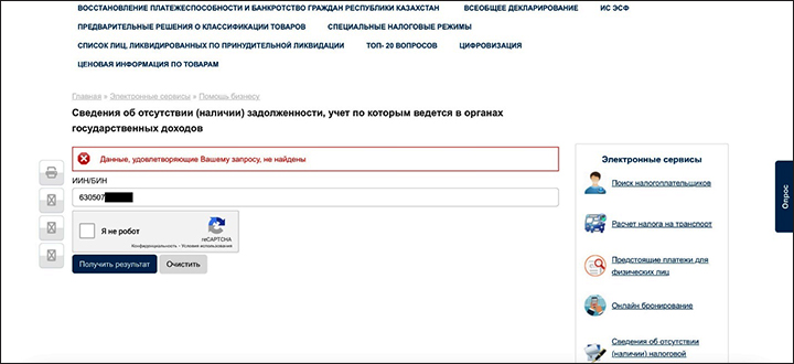 Пробить по базе можно любого гражданина республики//Скриншот страницы сайта kgd.gov.kz/ru