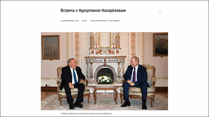 Назарбаев действительно 13 декабря провел встречу в Ново-Огарёве с президентом России Владимиром Путиным. Об этом опубликована официальная информация на сайте Кремля, но она очень куцая — встретился и всё, без подробностей.