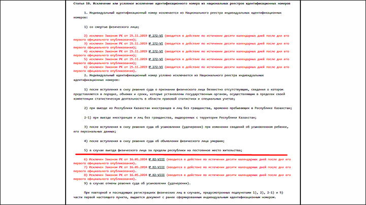 ИИН в Казахстане аннулируется после отъезда в другую страну на ПМЖ//Скриншот страницы сайта adilet.zan.kz