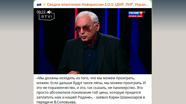 Если дальше будут такие ляпы, мы можем проиграть. И это не пораженчество, и это, так сказать, не паникёрство. Это просто абсолютное понимание той цены, которую придётся заплатить нам и нашей Родине,