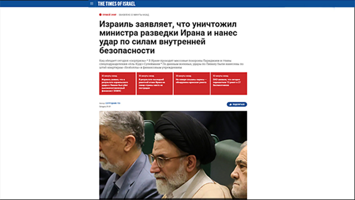 Израиль объявил об убийстве главы разведки Ирана Эсмаила Хатиба. Скриншот: The Times of Israel
