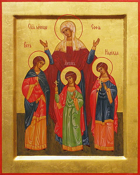"Святые мученицы Вера, Надежда и Любовь родились в Италии. Их мать, святая София, была благочестивой вдовой-христианкой. Назвав своих дочерей именами трех христианских добродетелей, она воспитывала их в любви ко Господу. Об этом было донесено императору Адриану, повелевшему юным отроковицам (Вере было 12, Надежде – 10, а Любови – 9 лет) принести жертву Артемиде, но святые девы были непреклонны. За это их подвергли жесточайшим пыткам и обезглавили. А святая София, видевшая мучения дочерей, на третий день после их смерти сама предала душу Господу..."