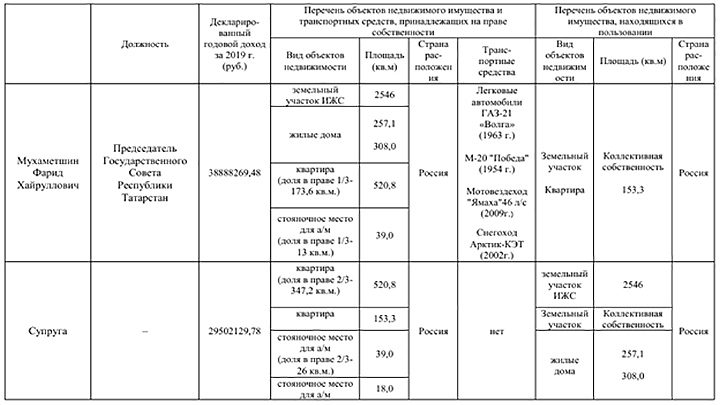 Сведения о доходах четы Мухаметшиных в бытность его премьер-министром // Скриншот декларации