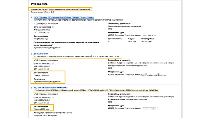 Кстати, сам Фарид Мухаметшин был соучредителем "Школы современного лидера", которую после проверки закрыли. Как выяснилось, она была зарегистрирована с нарушением законодательства и деятельности не вела. Зато активную коммерческую деятельность ведёт возглавляемая им общественная организация "Ассамблея народов Татарстана" – участвует в госзакупках и выиграла 15 из них, заработав 18 млн рублей. Например, выпустила журнал "Наш дом – Татарстан". До 2021 года там числилось в учредителях сразу несколько чиновников, включая Мухаметшина.