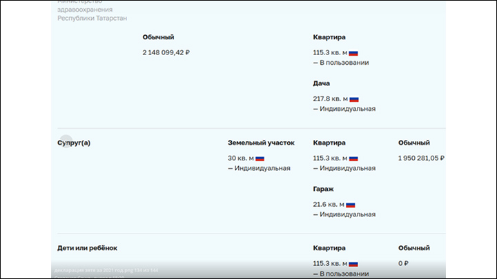 Декларация зятя Мухаметшина // Скриншот с сайта Минздрава Татарстана