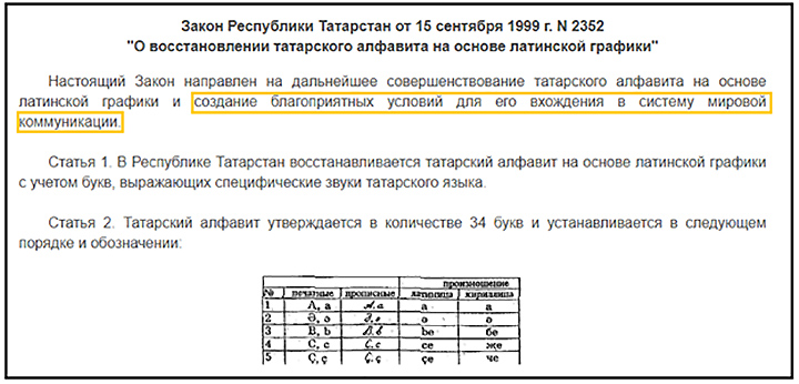 Больше десяти лет в Татарстане настойчиво пытались перевести язык с кириллицы на латиницу // Скриншот с сайта docs.cntd.ru
