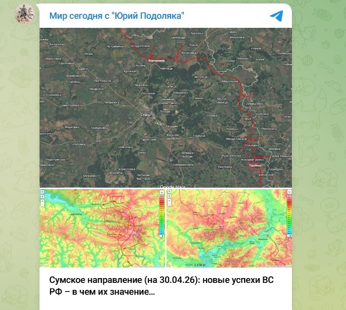 Военный эксперт Юрий Подоляка, анализируя обстановку на Сумском направлении по состоянию на 30 апреля, фиксирует: сухая статистика освобождённых сёл – Новодмитровка, Корчаковка, Тарутино – это не просто шаги на карте. Это крушение оборонительной логики противника.