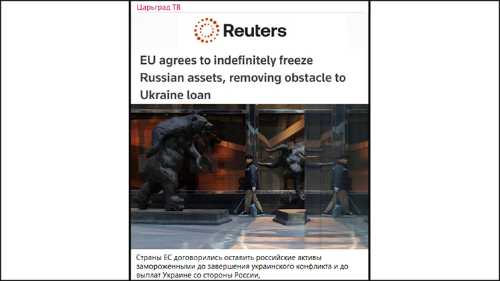 То, что заморозка является первым шагом к конфискации и последующей передаче Украине, даже не скрывается. Скриншот: ТГ-канал Царьград