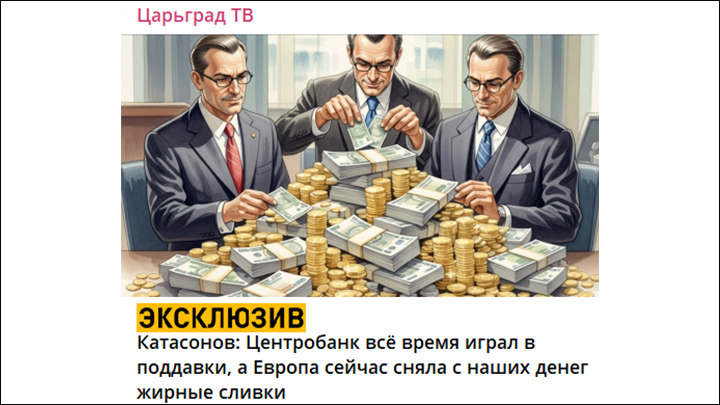 Фактически Россия сама дала деньги Европе на войну с нами, и некоторые экономисты предупреждали об опасности такой политики задолго до начала СВО. Скриншот: ТГ-канал Царьград