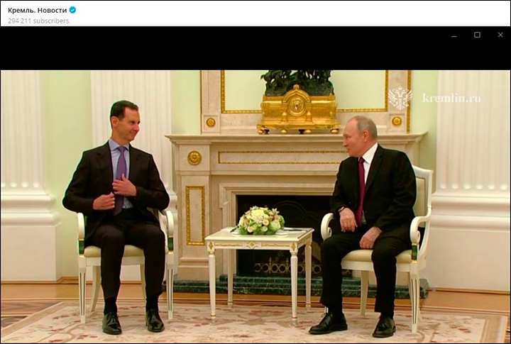 Башар Асад (слева) был частым гостем в Москве. Скриншот: телеграм-канал "Кремль. Новости"