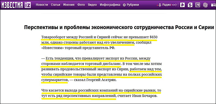 Россия вкладывала в Сирию миллиарды. В ответ – лишь "перспективы" и "планы" выгод для нашей страны, которые так и остались на бумаге. Скриншот: интернет-сайт iz.ru