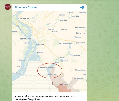 В свою очередь известный на Украине мониторинговый ресурс Deep State сообщает, что Россия заметно продвигается и на Запорожском направлении. По данным украинских аналитиков, в районе Степногорска, что является кратчайшим направлением на Запорожье, русские бойцы "применяют тактику инфильтрации малым количеством пехотинцев, как было на Покровском направлении, используя погодные условия: туман, холод и снег затрудняет работу дронов".