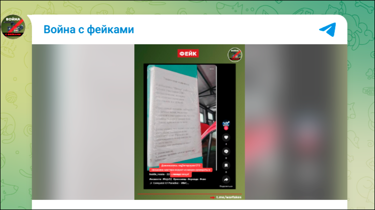 Скриншот: тг-канал "Война с фейками"