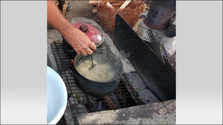 Рубили поваленные осколками деревья, готовили на них еду. Готовили на импровизированной печке во дворе суп, кашу, варили картошку и даже пекли пирожки.