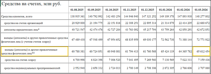 На счетах частных вкладчиков хранится более 65 трлн рублей. Скриншот с сайта cbr.ru