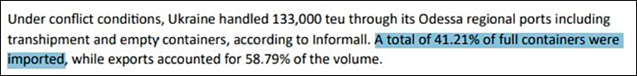 И тем не менее украинские порты принимают корабли. При этом контейнерный импорт в Одесские порты заметно вырос – по данным отраслевых источников, в последние годы доля импорта составляет почти 42% от общего контейнерного оборота через порты Одессы.