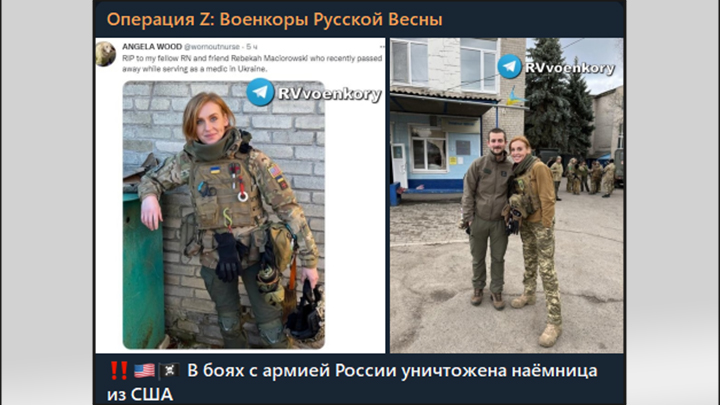 Но первой ликвидированной в Донбассе американской наёмницей стала Ребекка Мациоровски. Будучи медиком, она приехала на Украину передать опыт украинским боевикам.