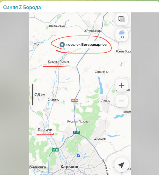 По оперативным сведениям наши войска прорвали границу на западе Харьковской области и ведут активный бой за село Ветеринарное в направлении рубежа Казачья Лопань – Дергачи, сообщил военкор Тимофей Ермаков, автор канала "Синяя Борода".