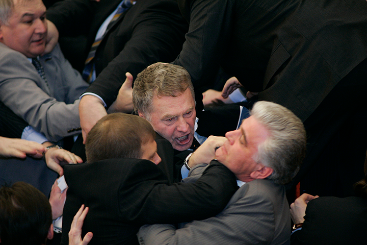 Отстаивая свою точку зрения, Жириновский мог пустить в ход и кулаки. Фото: Vasilii Smirnov/Russian Look/Globallookpress
