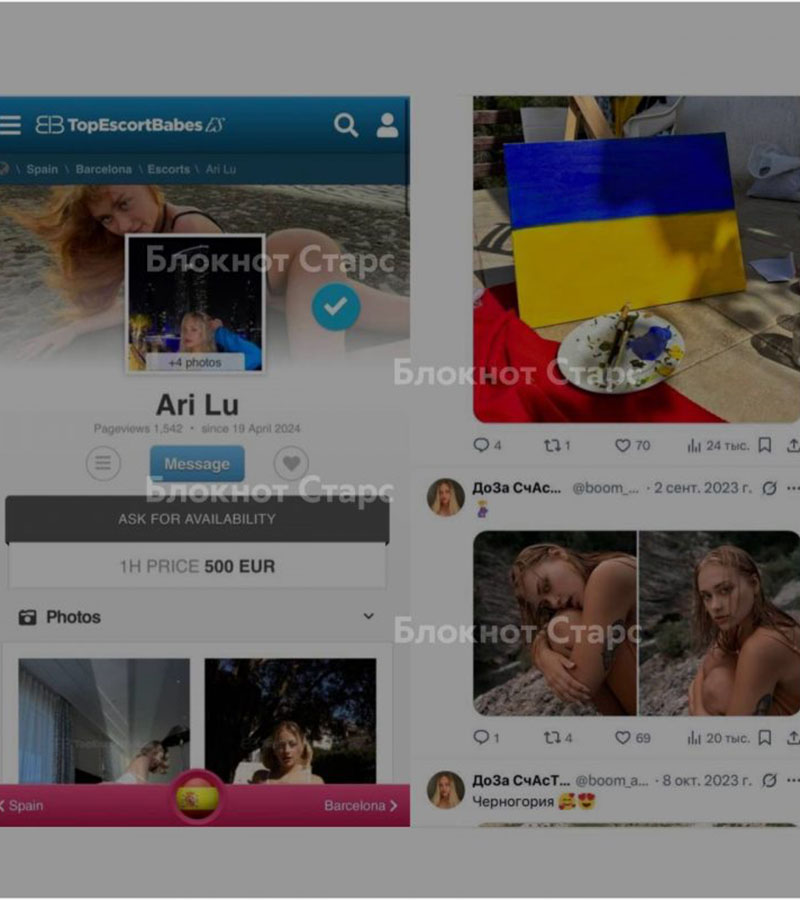 На одном из "сайтов для взрослых" была обнаружена анкета Ковальчук, в которой указывалось, что она некоторое время проживала в Барселоне. Услуги модели оценивались в 500 евро за час. При этом родной язык был указан русский, об украинском - ни слова.