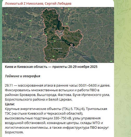 По данным паблика, основной целью удара стала энергетика Киева и области, есть "очень много разрушений". По мнению аналитиков канала, задача ВС России здесь - выбить украинскую ПВО там, где она наиболее сильно сконцентрирована.