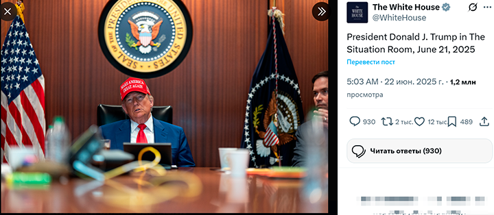 Кстати, он в ситуационной комнате Белого дома в окружении ближайших советников следил за ударами в прямом эфире, надев красную кепку со своим предвыборным слоганом.
