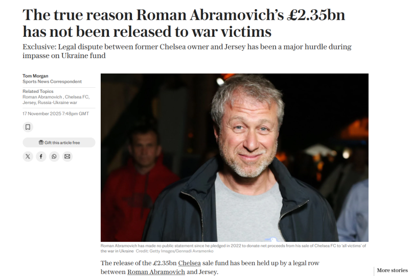 Пока суд да дело, королевский суд Джерси арестовал активы Абрамовича - это было ещё в 2022 году, "заморожены" около 7 млрд долларов.