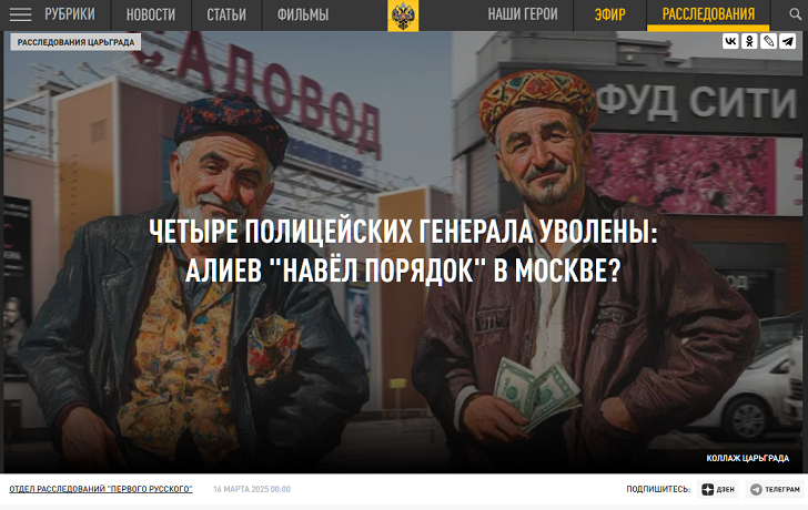 Между тем азербайджанская диаспора в Москве продолжает "показывать зубы". Так, ответом на попытки навести порядок на рынках "Садовод" и "Фуд Сити" стало увольнение сразу четырёх генералов МВД. Полицейские потребовали документы на продукцию, опечатали склады и приостановили деятельность на объекте. А потом их же обвинили в вымогательстве денег, сказал бывший оперативный сотрудник московского РУБОПа Михаил Игнатов.