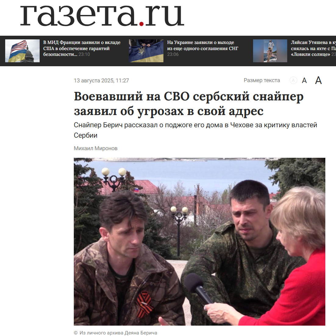 Сербский доброволец Деян Берич, ставший одним из первых иностранных бойцов, поехавших на защиту Донбасса, рассказал о цепочке событий, которые начались с угроз и закончились поджогом его дома в России. По словам воина, известного под позывным "Деки", за атакой стояли не случайные люди, а те, кто действует по заказу зарубежных спецслужб. Берич устал молчать и рассказал правду.