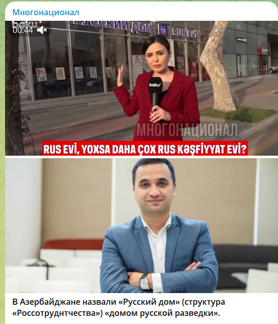 Сейчас власти Азербайджана поставили требование - приостановить деятельность "Русского дома" в Баку. Это жёсткое давление, причём на организацию, которая осуществляет исключительно культурную, просветительскую деятельность. Что значит "Русский дом"? Там никаких политических мероприятий не проходит, там проходит изучение русского языка, проводят мероприятия, связанные с поддержкой русских общин и диаспор Азербайджана. В том числе мероприятия по линии азербайджанской культуры. Там нет даже явно пророссийских мероприятий,